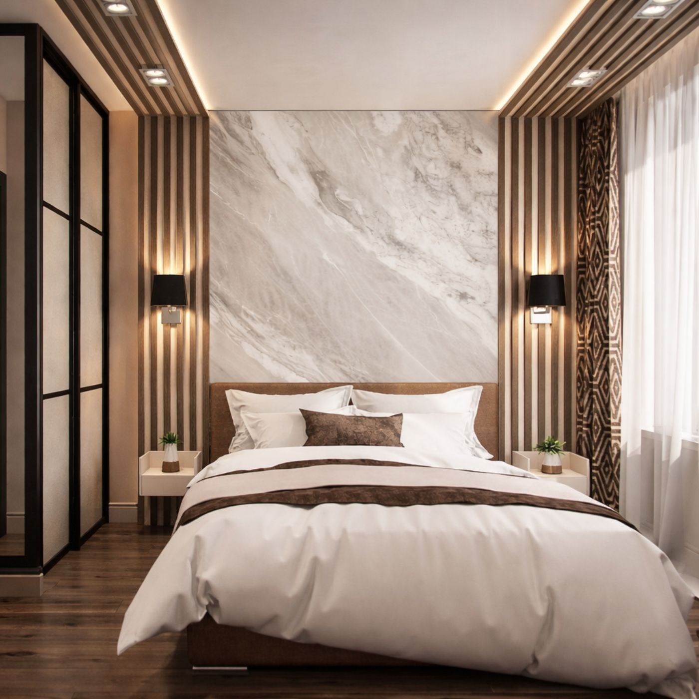 In de slaapkamer draait alles om rust en balans. Lussaro wandpanelen zorgen voor een strak en warm accent zonder het ruimtegevoel te verstoren.