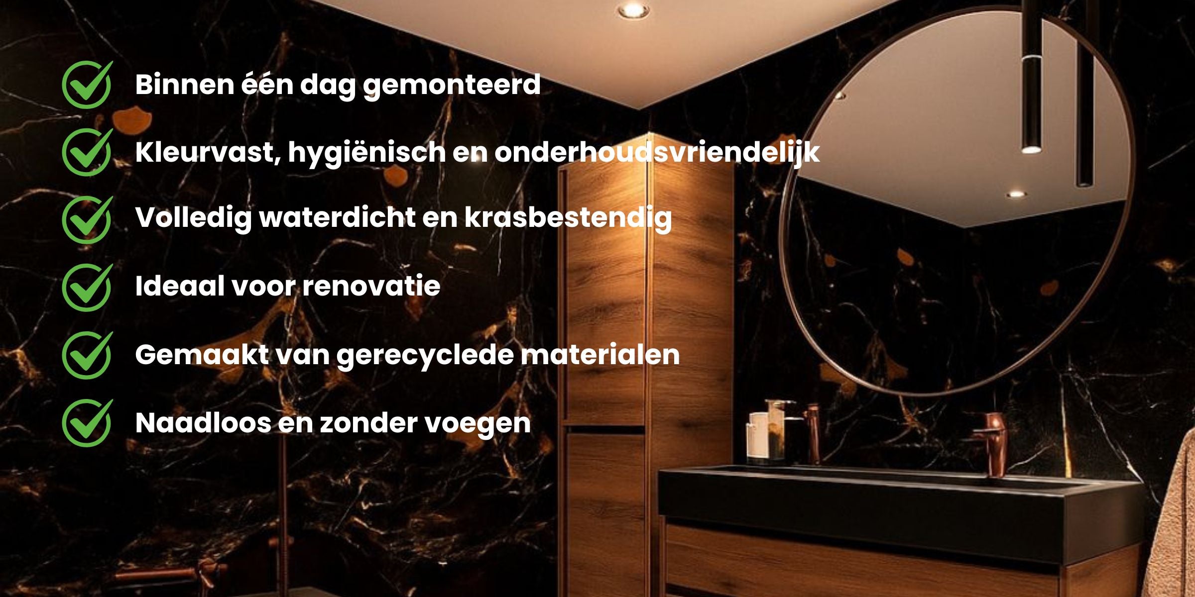 In de badkamer komt kwaliteit samen met functionaliteit. De wandpanelen van Lussaro zijn volledig waterbestendig, kleurvast en onderhoudsvriendelijk.